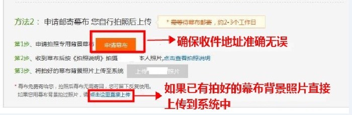 如果您之前已经用幕布背景拍过照片,可以直接点击上传,如没有请点击【申请幕布】。